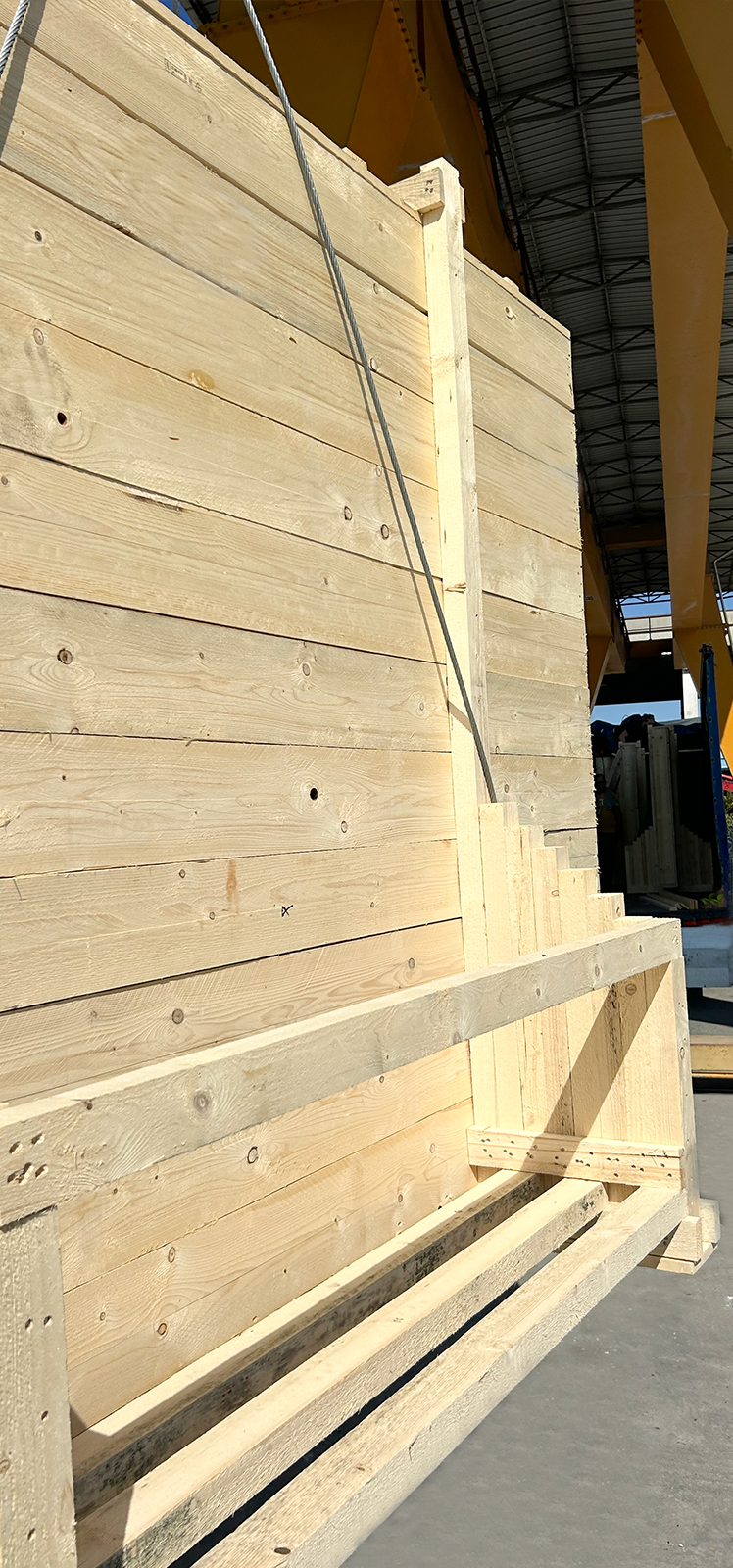 Il legno viene trattato per prevenire l’umidità e proteggerlo da funghi e muffe. Per gli imballaggi più pesanti, utilizziamo anche metallo, come l’acciaio, per garantire la massima robustezza.